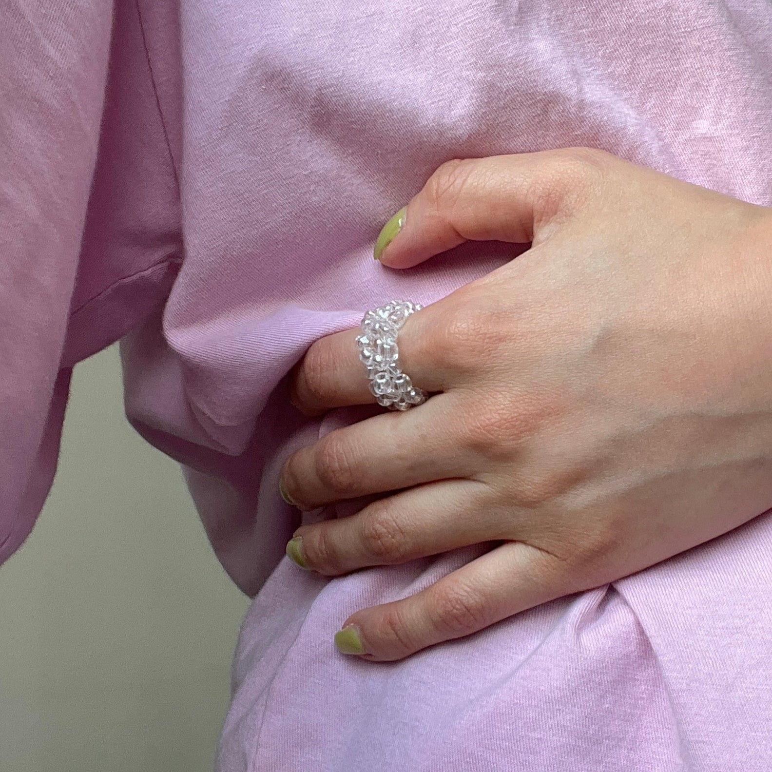 ANTH’s beaded rings are made from a material with stretch properties, so size selection can be flexible. With repeated wear, the ring size may gradually increase. We recommend ordering your standard size.