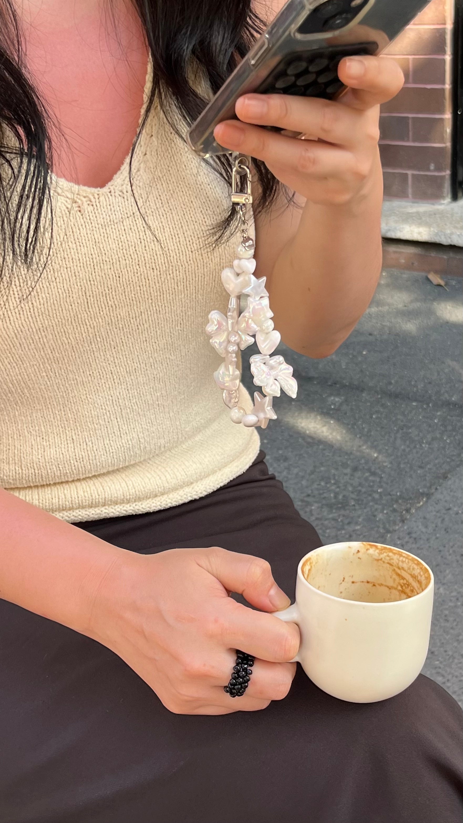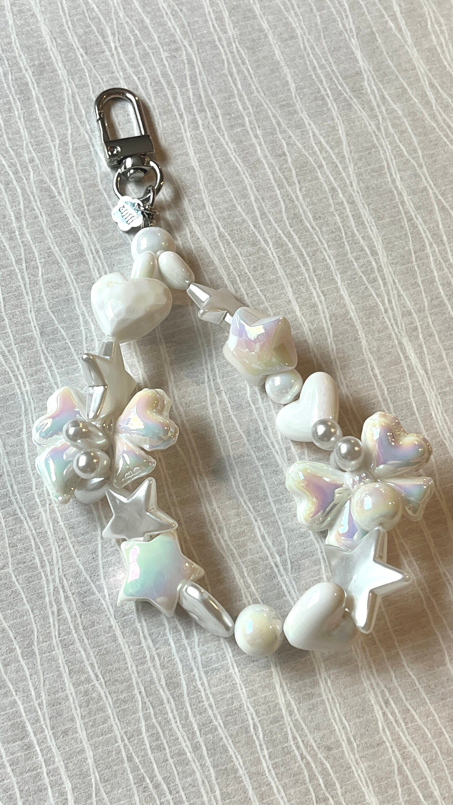 This all-white chandelier keyring is designed to shine from every angle. By mixing glossy white with shimmering AB white beads, we maximized the way white reflects light — capturing that radiant, luminous glow. Bold, eye-catching, and impossible to ignore. Try this chandelier keyring and let it shine ✨