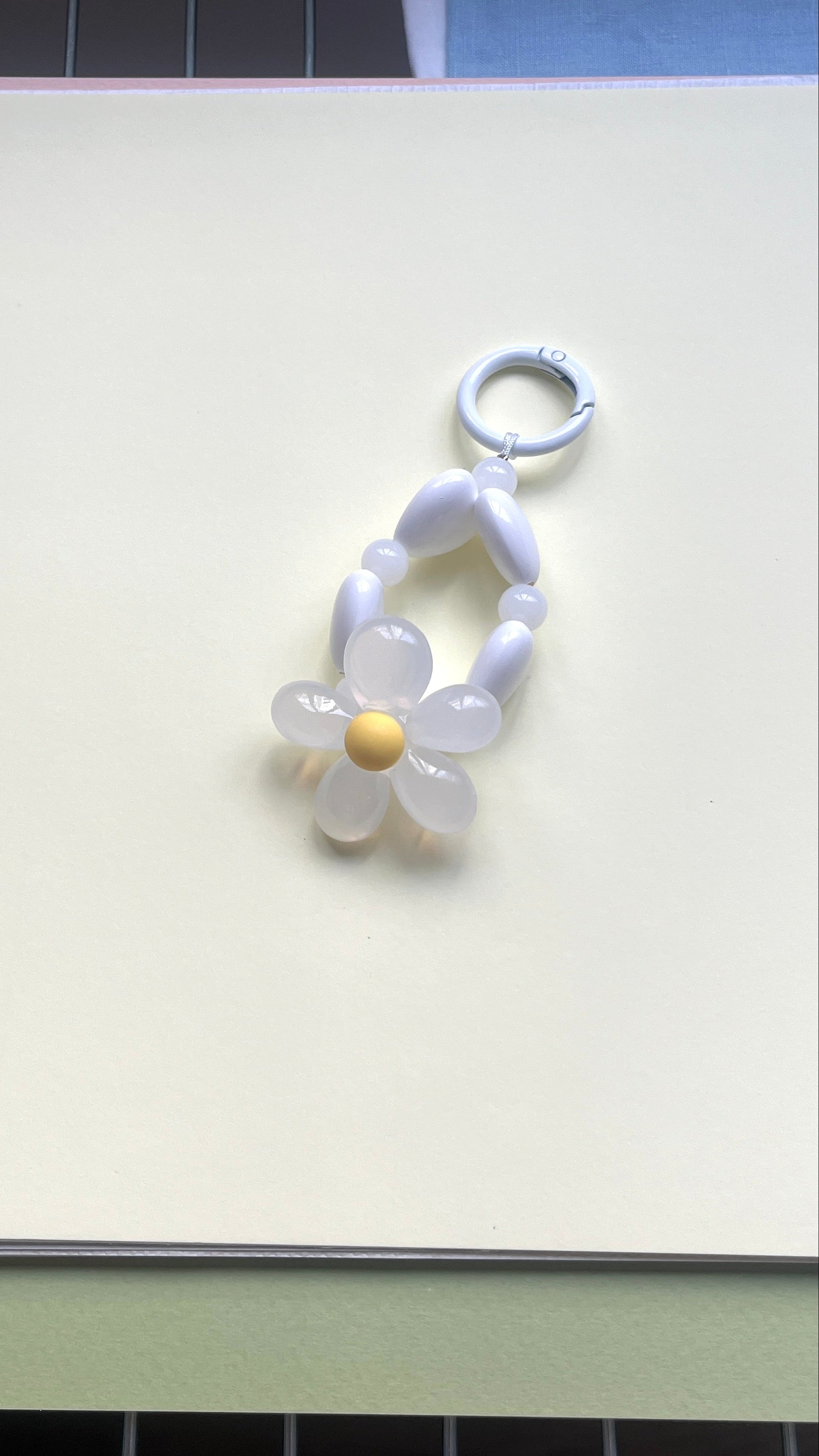 This handmade accessory features a bold, oversized daisy, combining simplicity with a visual appeal. Perfectly versatile, it doubles as a charming key holder or a distinctive bag charm, adding a cute and iconic touch to everyday essentials. Crafted with care, it blends functionality with playful style.