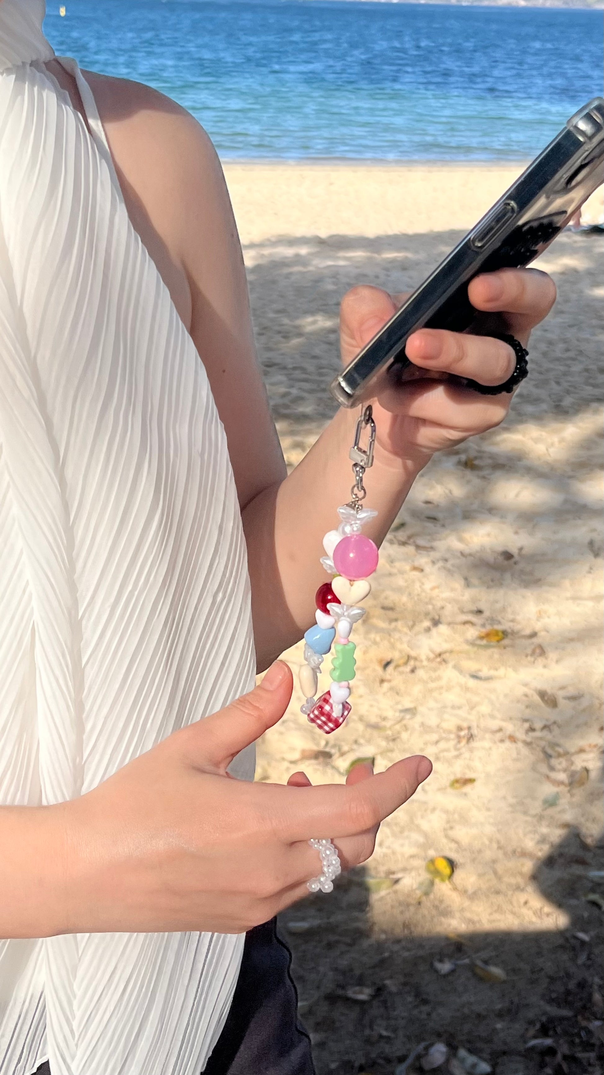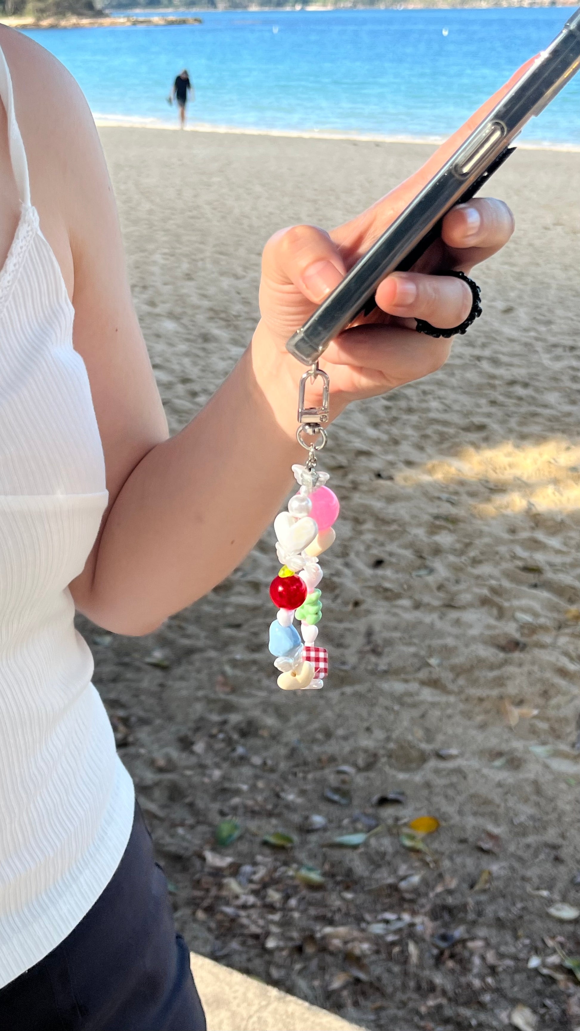 This keyring and phone charm are crafted with a mix of colorful beads in playful shapes and designs. The vibrant palette brings instant joy to your bag or phone. A delightful little accessory that celebrates color, creativity, and carefree vibes. Why not take this picnic-inspired accessory along on your next fun day out? 🌼🧺✨